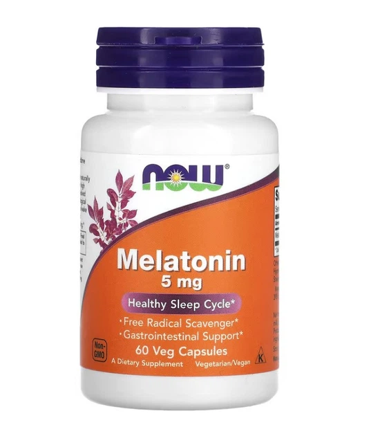 Мелатонін 5мг, Melatonin 5 mg NOW foods, 60 вегетаріанських капсул