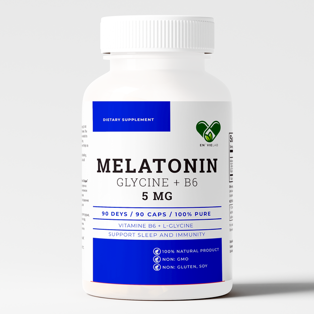 Мелатонін 5 мг + гліцин + В6 Envie Lab для покращення сну та для нервової системи 90 капсул