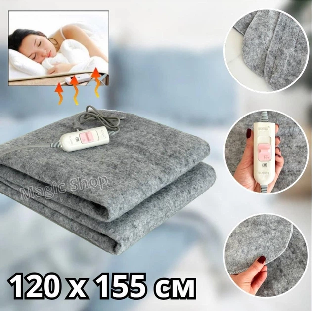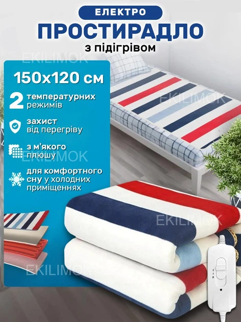 Електропростирадло полуторне 150х120 см електроковдра простирадло з підігрівом тепле кабель живлення 1,35м з регулятором тем