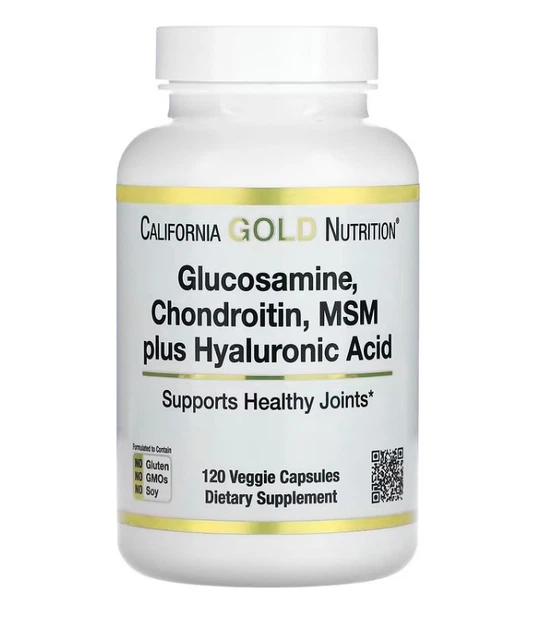 Глюкозамін хондроїтин і МСМ з гіалуроновою кислотою California Gold Nutrition 120 рослинних капсул