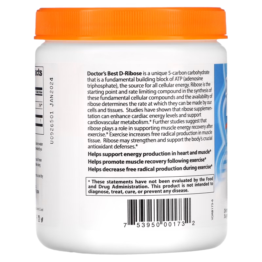 Doctor's Best Натуральна добавка Doctor's Best Pure D-Ribose Powder, 250 грам