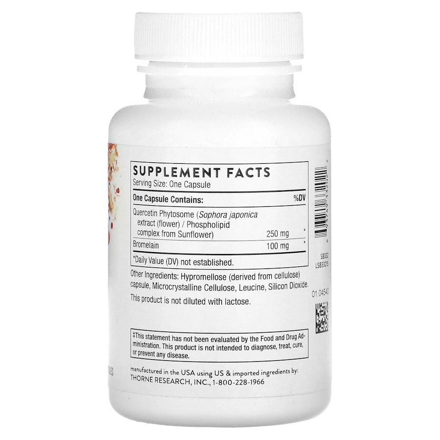 Thorne Quercenase містить фітосому кверцетину (кверцетин, пов'язаний з фосфоліпідами з соняшнику, який збільшує здатність організму засвоювати кверцетин) та бромелаїн (з'єднання ферментів, що розщеплюють білок, отриманих з рослини ананасу). Крім того, бромелаїн сприяє зміцненню імунітету, оскільки містить компоненти, що допомагають підтримувати здоровий баланс цитокінів. Бромелаїн