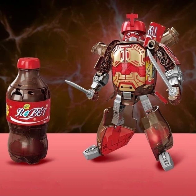 Трансформер робот із пляшки (трансформер самурай) содова - Червоний