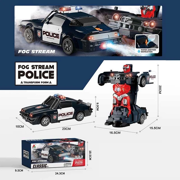 Трансформер Feng Sheng Робот-машинка 20см Поліція звук, світло, пара FW338-6