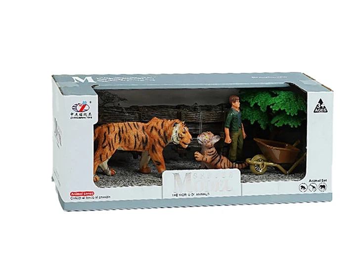 Набір тварин Q 9899 C-2 "Дикі тварини", фігурка фермера, 2 фігурки тварин, аксесуари, в коробці (6977153660112) Вид 1