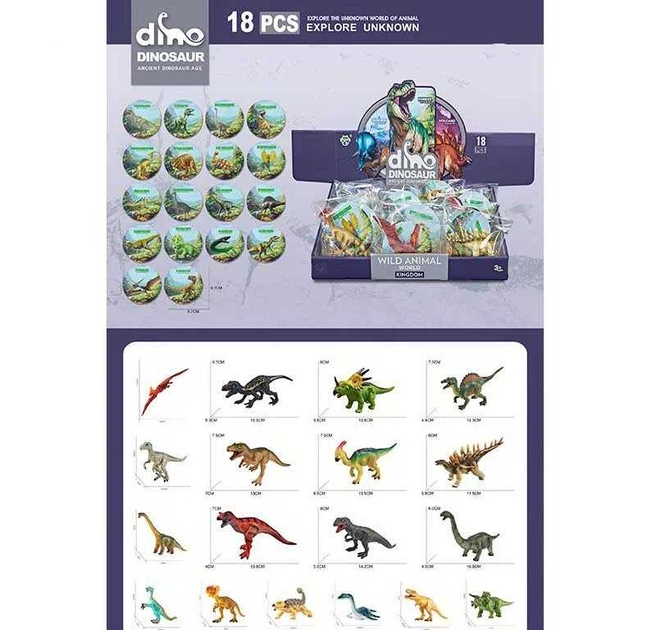 Набір динозаврів js 35-1 (18) ціна за 18 штук в блоці, картки із назвами, в коробці