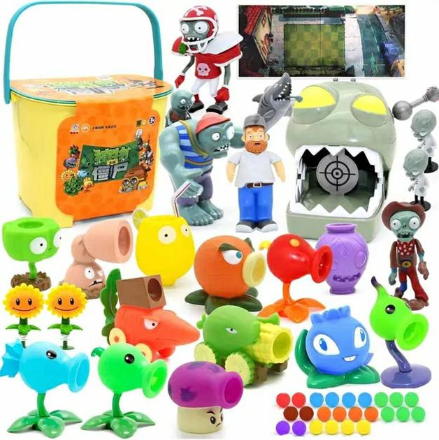 Набір ігрових фігурок з гри Plants vs Zombies Рослини проти зомбі, 22 персонажа у відрі (29х22 см)