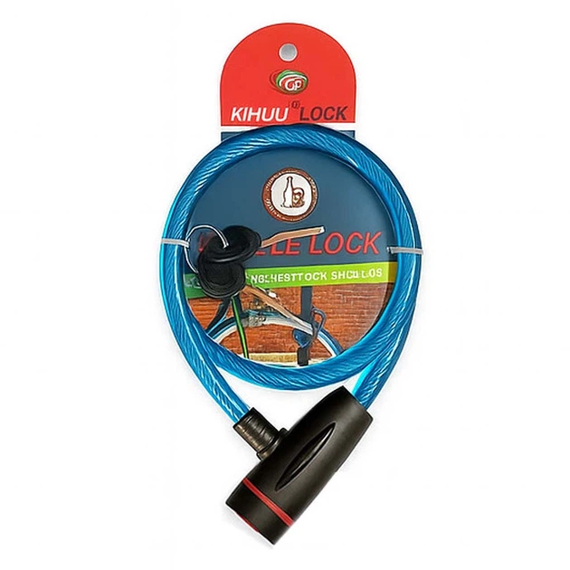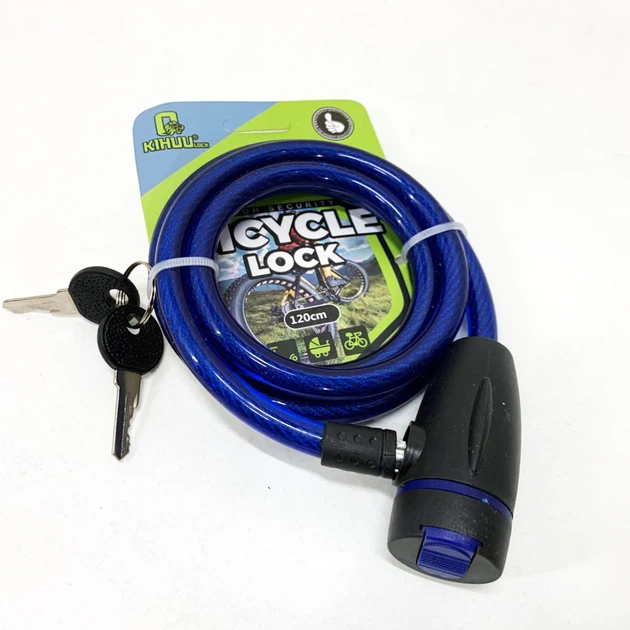 Замок велосипедний KIHUU LOCK 187, 10*120 тросовий, 2 ключі. Колір: синій 5148819
