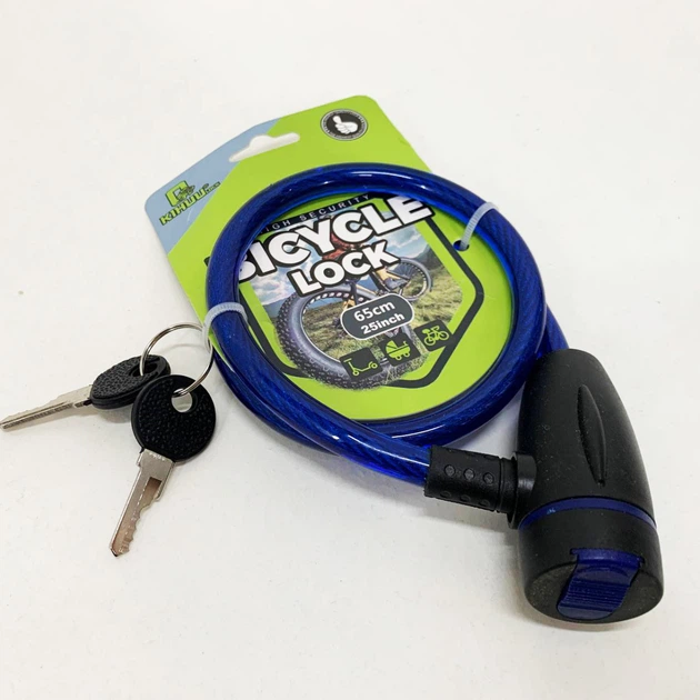 Замок велосипедний KIHUU LOCK 187, 10*65 тросовий, 2 ключі. Колір: синій