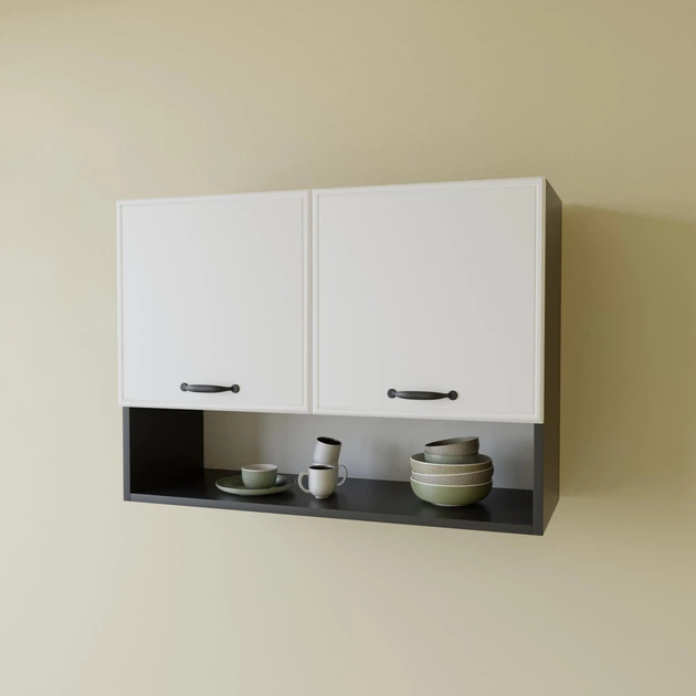 Шафа навісна на кухню 800х582х310 мм з нішею з відкритою полицею (К-53) Чорний/Білий