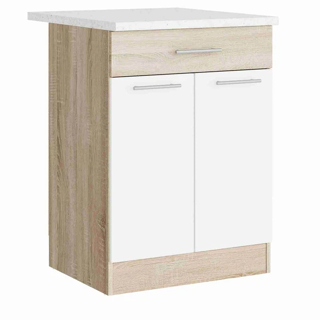 Кухонний модуль Еверест Еко Низ ящик 600 зі стільницею Дуб Сонома, Німфея Альба, Дуб Сонома 60х46х82 см