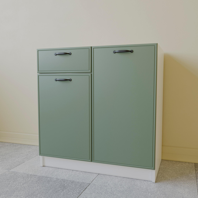 Тумба на кухню 800 мм Комбі МДФ (без стільниці). Нижній модуль для кухні 80 см Білий/Зелений