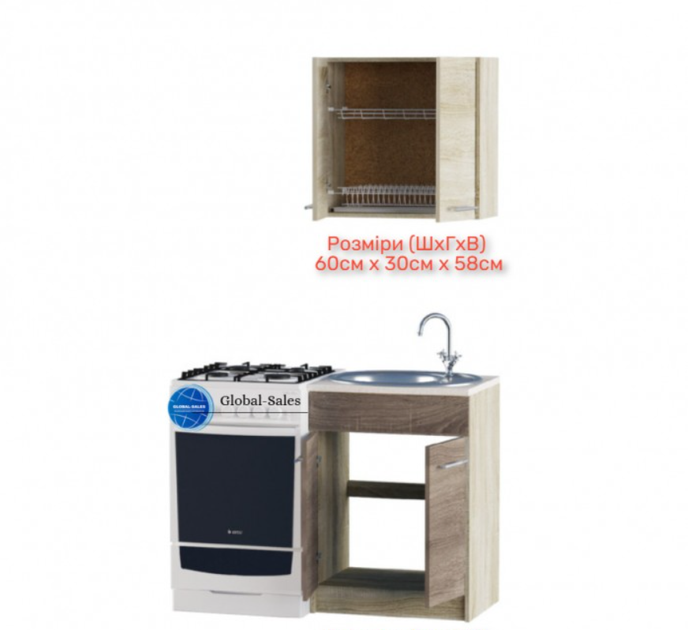 Кухонні модулі Еко набір 0.6 м, з врізною мийкою, Дуб Сонома, Дуб Сонома Трюфель