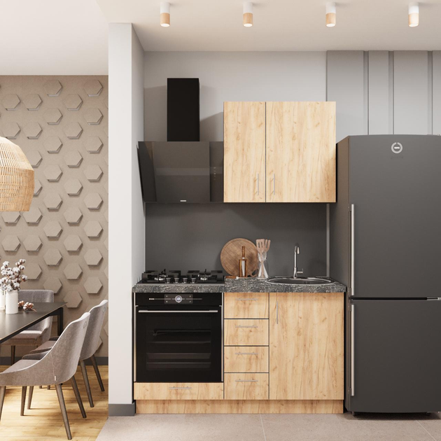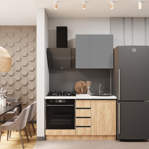 Кухня ДСП 2 Класік SENAM 1,4 м вбудована плита, окрема витяжка, без ручок Графіт сірий / Дуб крафт золотий Корпус Графіт (ДС