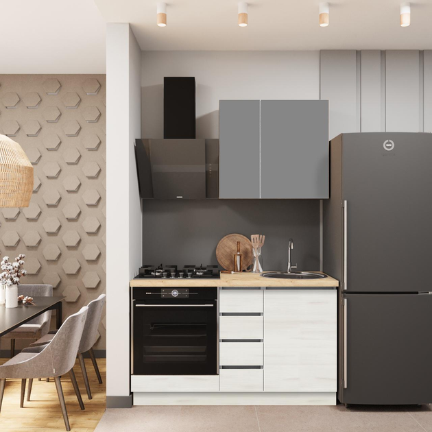 Кухня ДСП 2 Класік SENAM 1,4 м вбудована плита, окрема витяжка, без ручок Графіт сірий / Ясен серфсайд чистий (ДСП2Б14.10)