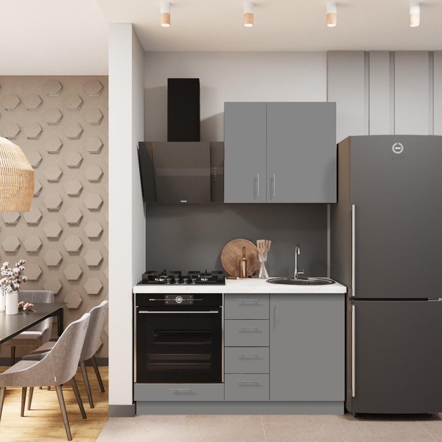 Кухня ДСП 2 Класік SENAM 1,4 м вбудована плита, окрема витяжка, з ручками Графіт сірий (ДСП2Р14.9)
