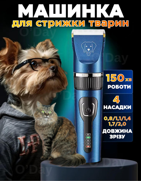Машинка для стрижки собак та котів набір для грумінгу всіх типів шерсті 4 насадки
