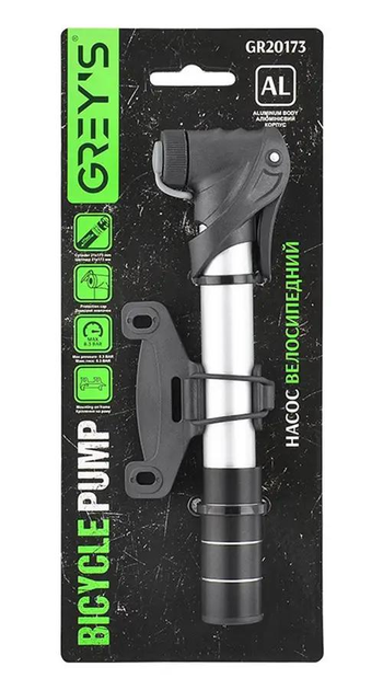 Насос велосипедний Grey's GR20173 алюміній, довжина 173 мм, вентилі AV/FV