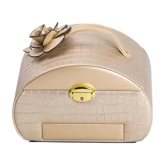 Скринька для прикрас з еко шкіри 3 яруси із замком органайзер для ювелірних виробів HP-5-21GOLD