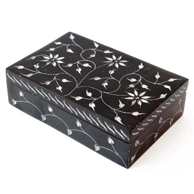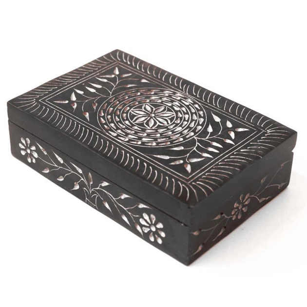 Скринька для прикрас кам'яна фарбована Чорна Мандала