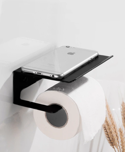 Тримач туалетного паперу, з поличкою для телефона та освіжувача повітря, коричневий, алюмінієвий