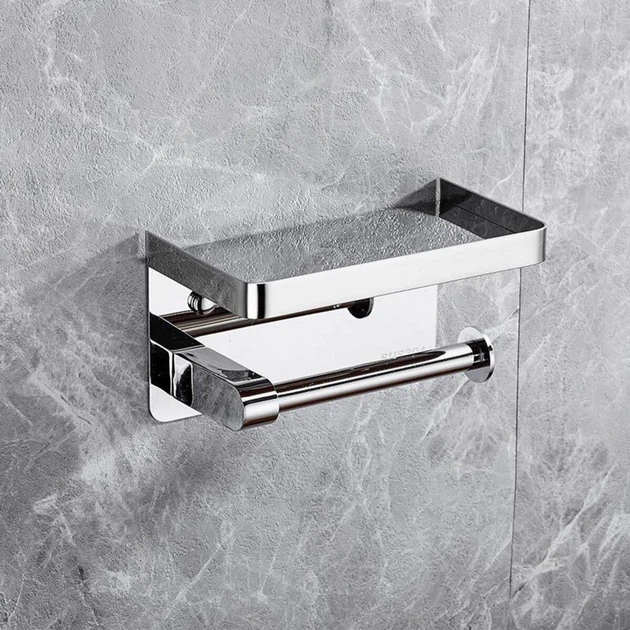 Тримач туалетного паперу з полицею HASKO нержавіюча сталь хромований (HA-73161-CHR)