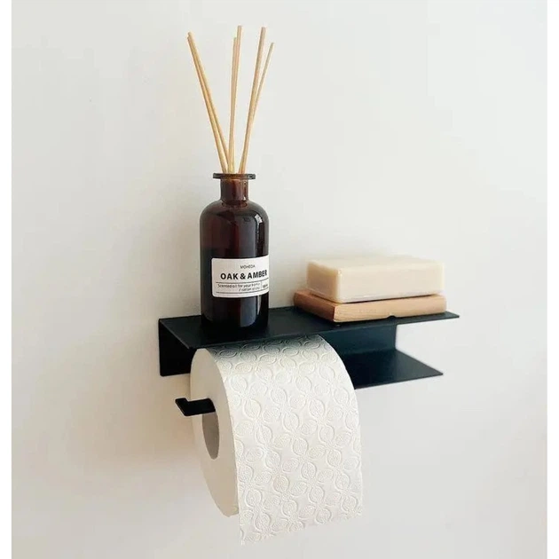 Тримач Туалетного Паперу Чорний З Полицею Металевий (371597)