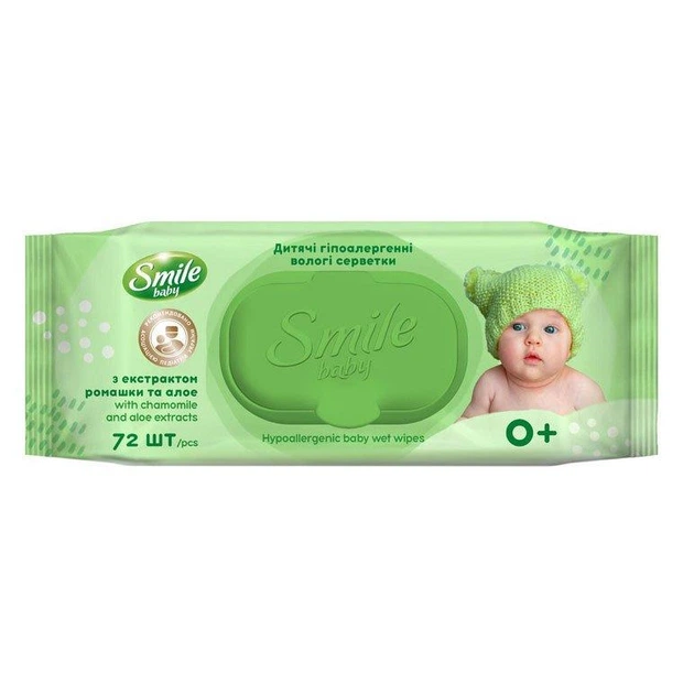 Салфетки вологі SMILE Baby 72 штуки в упаковці з клапаном
