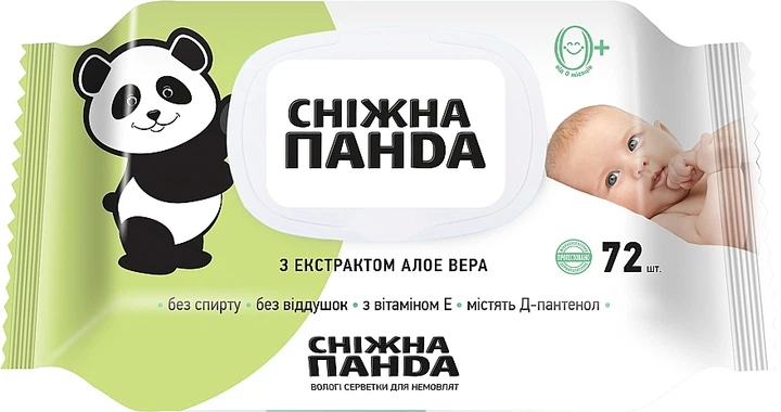 Вологі салфетки для немовлят "Алое", з клапаном - Сніжна Панда 72шт (689961-28069)