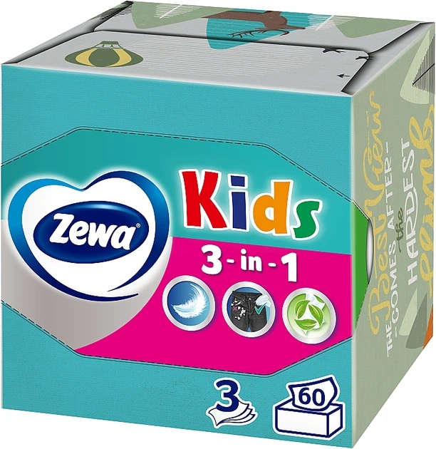 Серветки косметичні тришарові "Kids", лісові жителі, 60шт. - Zewa Kids 3D Box 60шт.