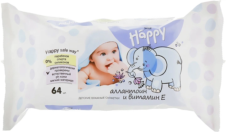 Вологі серветки з вітаміном Е, 64 шт. - Bella Baby Happy Vit E & Allantoin 64шт.