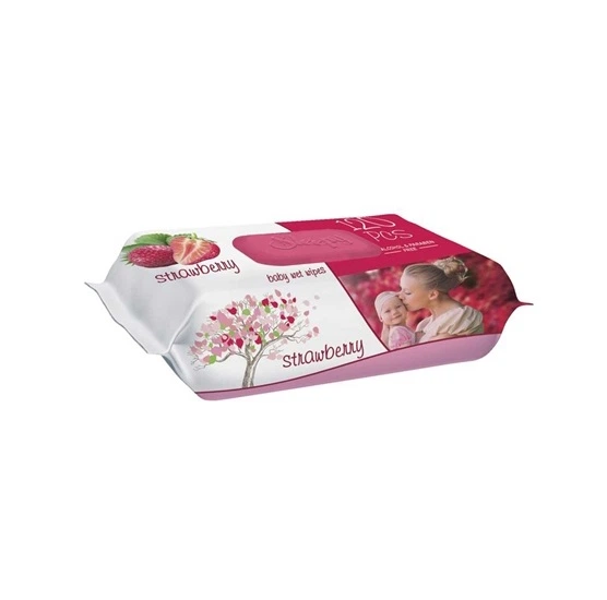 Дитячі вологі серветки з ароматом дикої полунці Babybella Soft & Thick Wet Wipes Wild Strawberry 120 шт