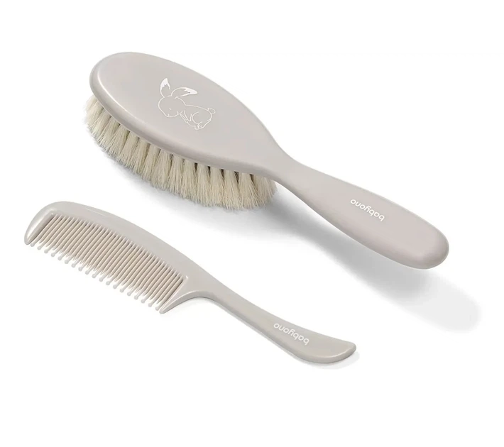 Щітка та гребінець для волосся BabyOno з натуральним ворсом Сіра
