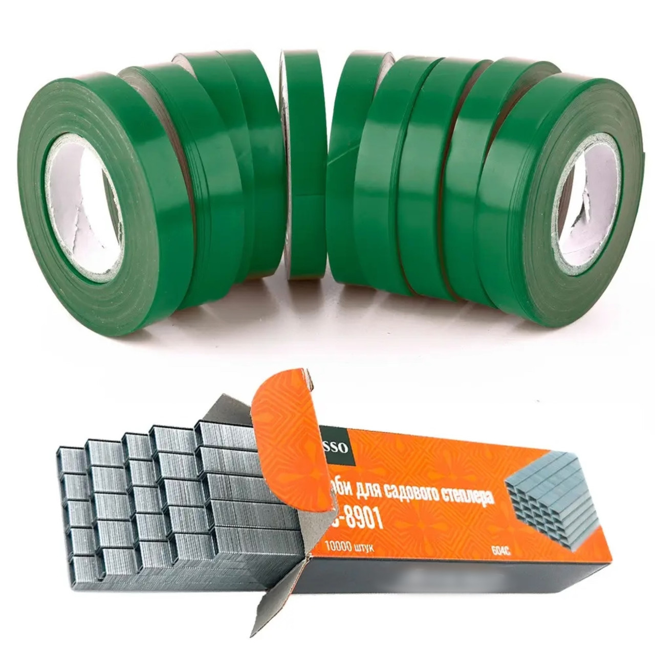 Набір для садового степлера тапенера: підвʼязочна стрічка 12 шт (360 м) + скоби (10000 шт)
