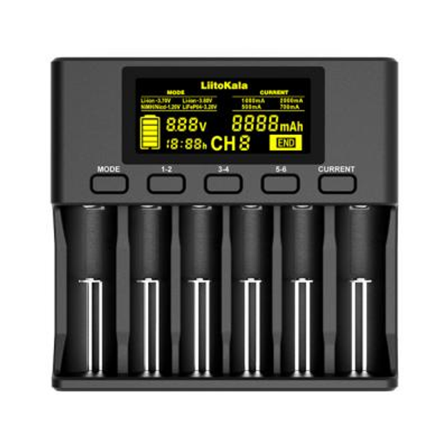 Зарядний пристрій для акумуляторів LiitoKala 6 Slots, LCD дисплей, Li-ion/Ni-MH/Ni-Cd/AA/AAA/AAAA