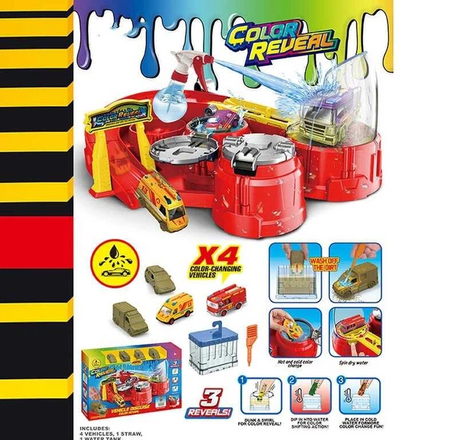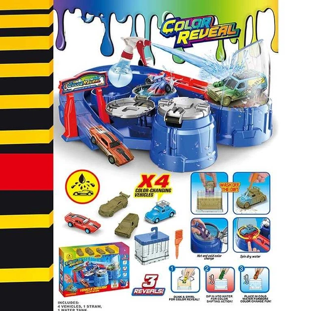 Автомийка SK 773 X 4 металопластикові машинки, змінюють колір, рухливі елементи, пульверизатор, піпетка для водички, в короб
