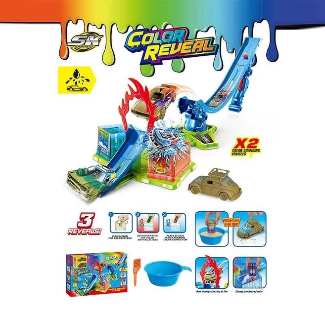 Автомийка sk 774 s (24) трек, 2 металопластикові машинки, змінюють колір, рухливі елементи, піпетка для водички, в коробці