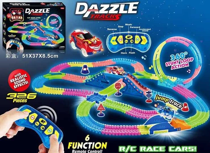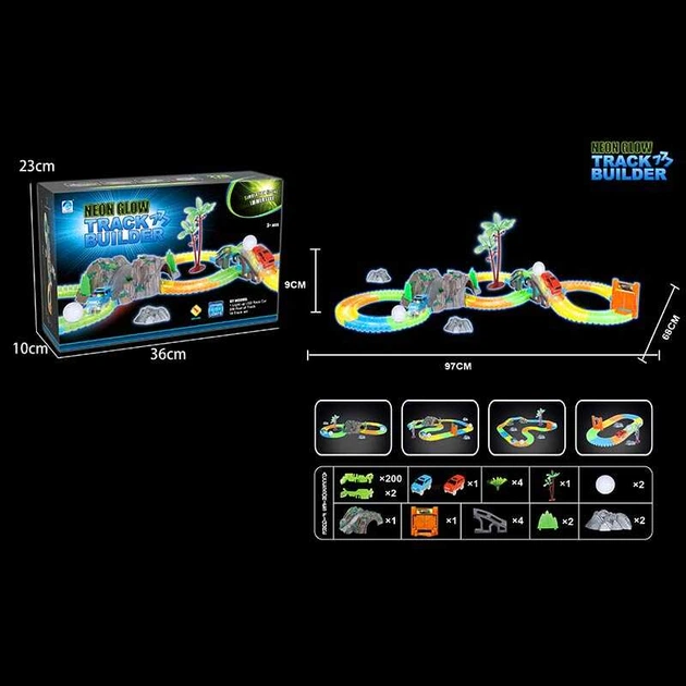 Неоновий автотрек на 200 деталей з підсвічуванням (777-133) машинка на батарейках
