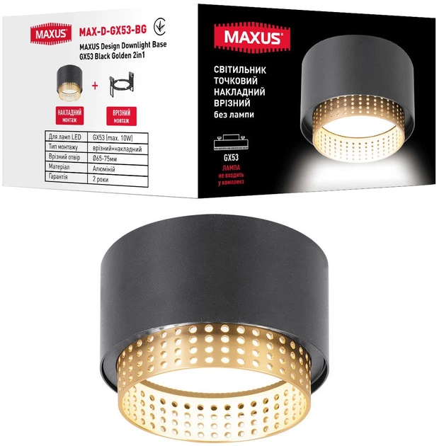 Світильник точковий Maxus Design Downlight Base GX53 max 1x10W Black Golden 2in1