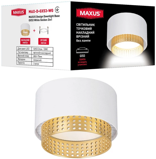 Світильник точковий Maxus Design Downlight Base GX53 max 1x10W White Golden 2in1