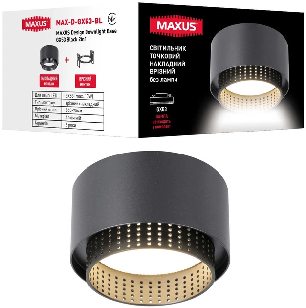Світильник точковий Maxus Design Downlight Base GX53 max 1x10W Black 2in1