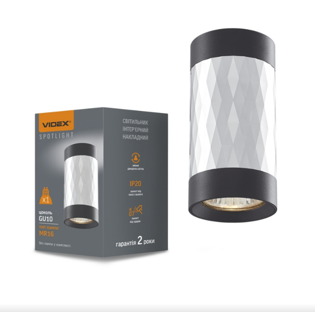 LED Світильник накладний під лампу GU10 чорний +срібляста призма VL-SPF03A-SPB Videx
