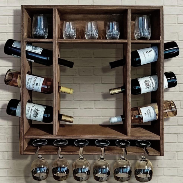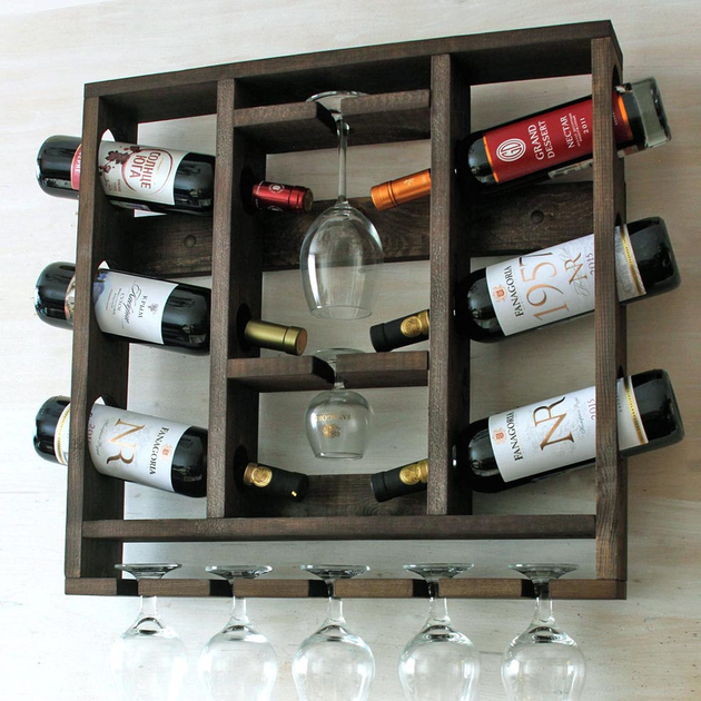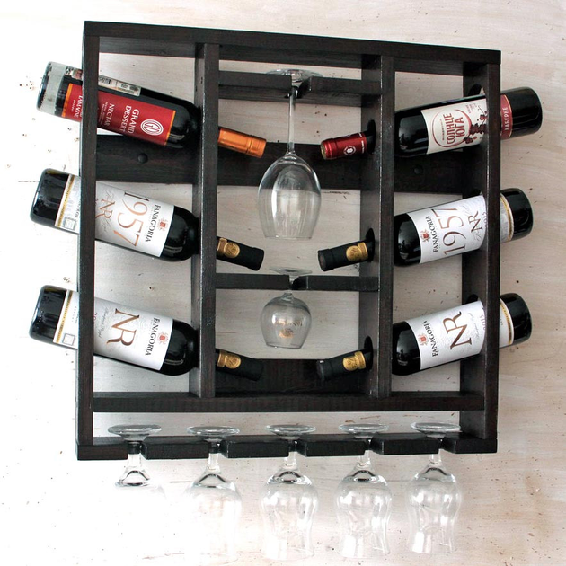 Настінна винна полиця з дерева Івакі мокко (ПНК-005810)