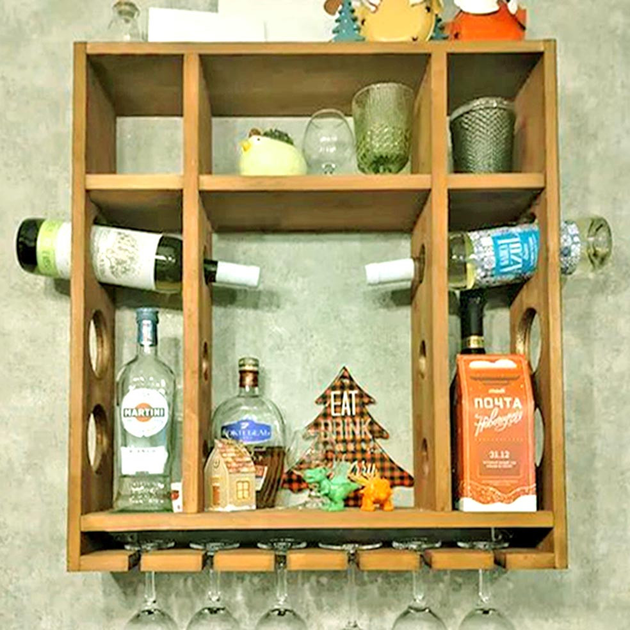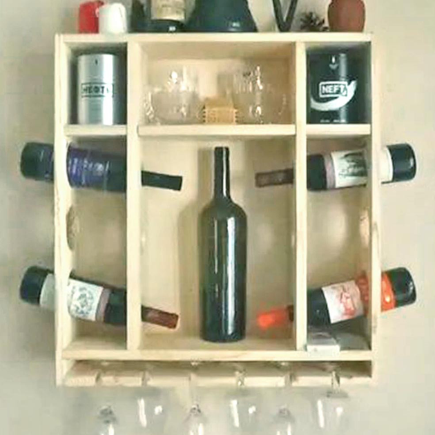 Настінна винна полиця з дерева Комакі зефір (ПНК-008420)