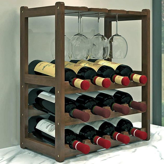 Настінна винна полиця з дерева Цудай сієна (ПНК-017705)