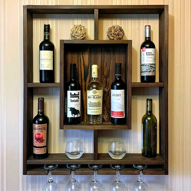 Настінна винна полиця з дерева Мацумото маслина (ПНК-001138)