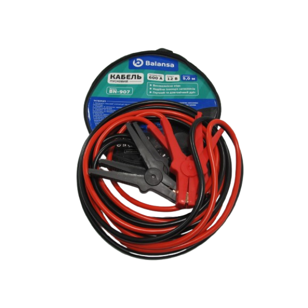 Стартові дроти прикурювання 600A BALANSA 5.0м, комплект 2 шт, клеми в повній ізоляції, сумка (63813)