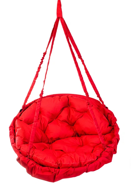 Підвісне крісло гамак до 200 кг d96 см із круглою подушкою червоного кольору без підставки для дому та саду