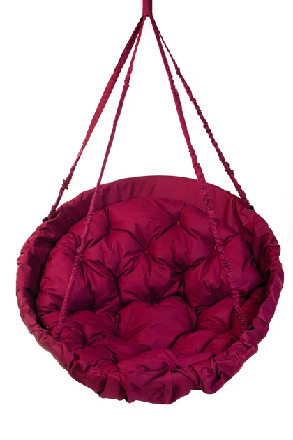 Підвісне крісло гамак до 200 кг d96 см із круглою подушкою бордового кольору без підставки для дому та саду