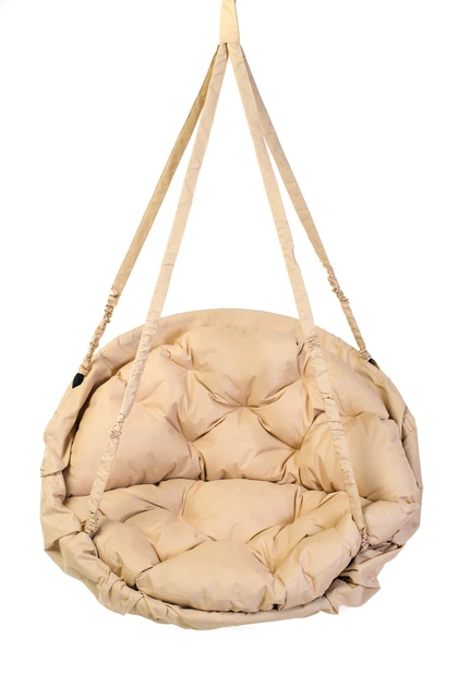 Підвісне крісло гамак до 200 кг d96 см із круглою подушкою бежевого кольору без підставки для дому та саду